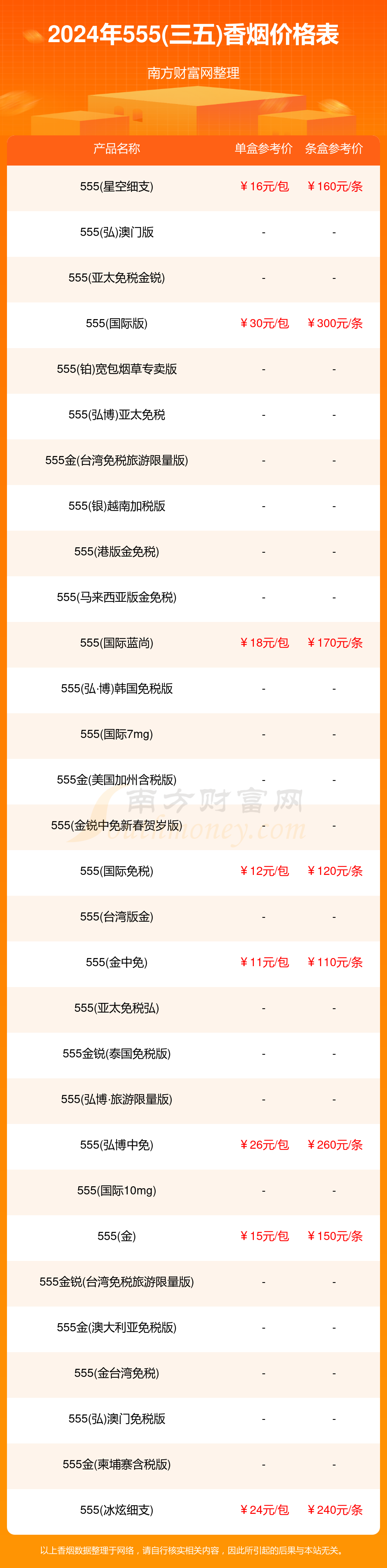 2024年555三五香烟价格表查询一览