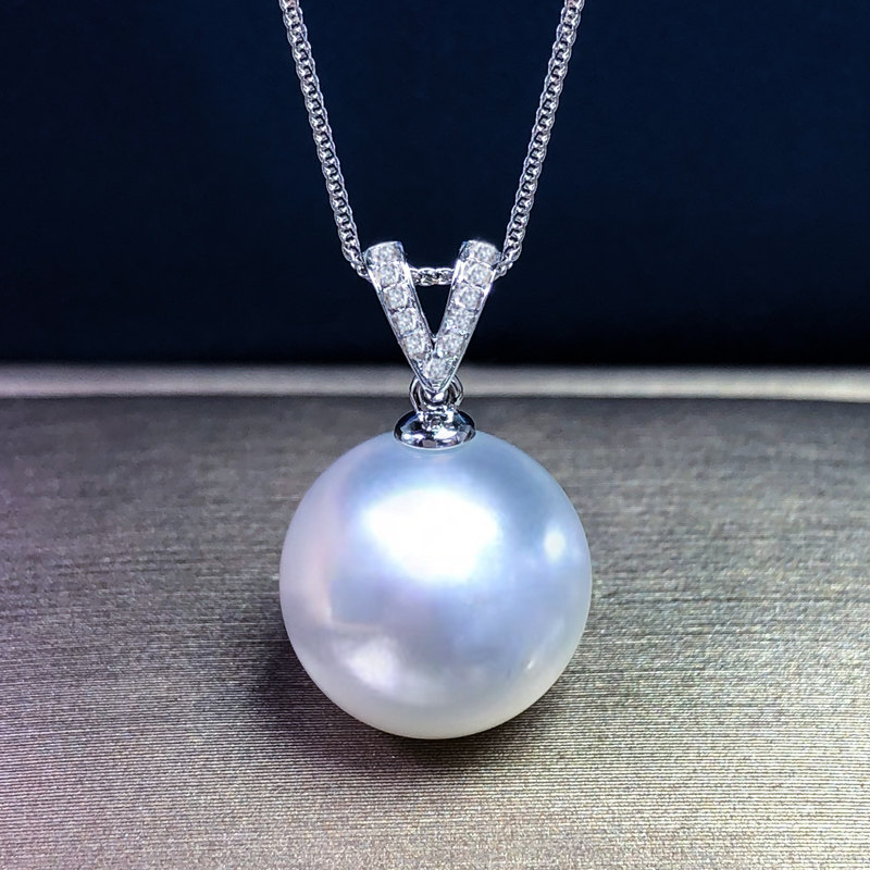 18k金轻奢豪镶钻石款澳白珍珠吊坠项链单颗天然海水白珠冷光项坠