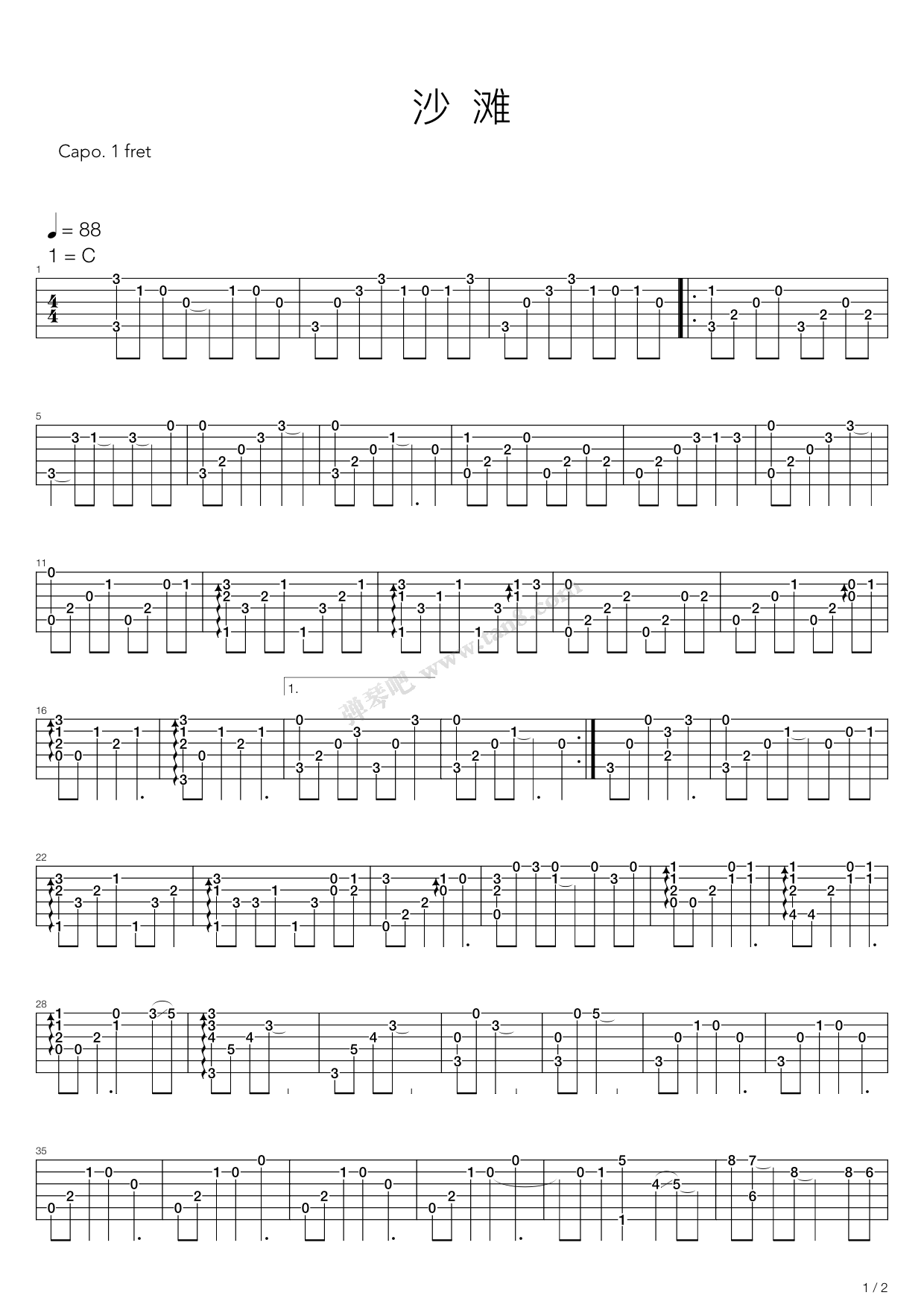 沙滩吉他谱