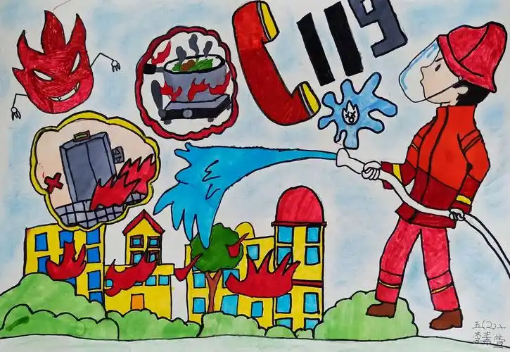 消防安全主题画.#创作灵感 #马克笔手绘 #原创作品 #消防 - 抖音