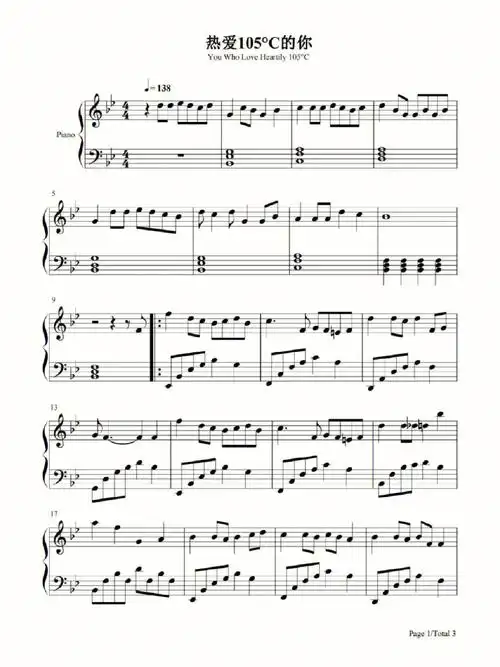 钢琴谱热爱105的你