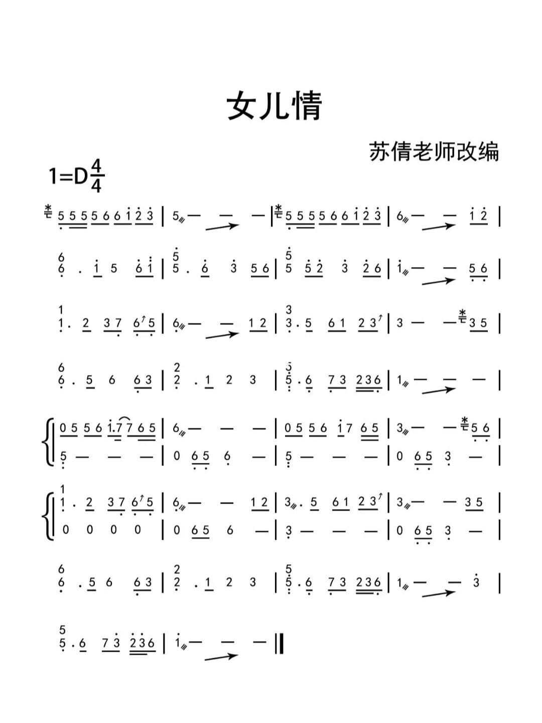 古筝曲谱【女儿情 】 - 乐器教程网