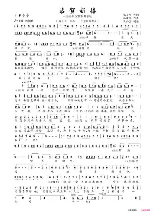 恭贺新禧又名:拜年歌简谱-蒋大为演唱-张士燮/谷建芬词曲1