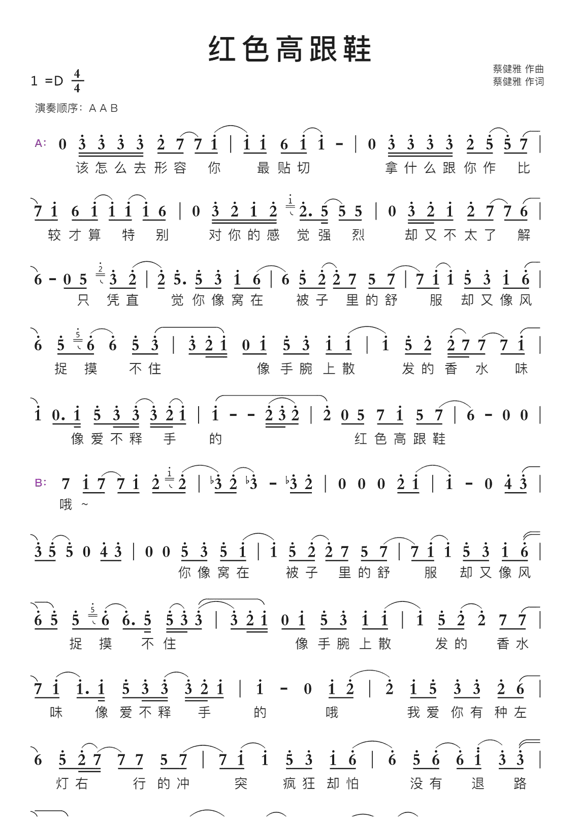 红色高跟鞋智能简谱