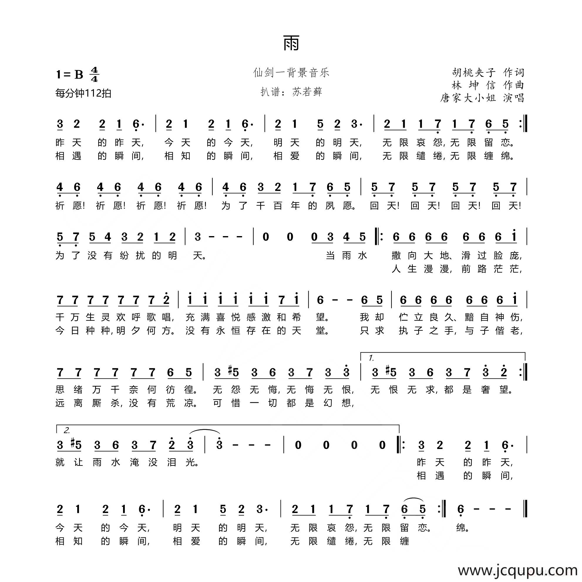 雨(仙剑一背景音乐)简谱-曲谱 - 酷好简谱