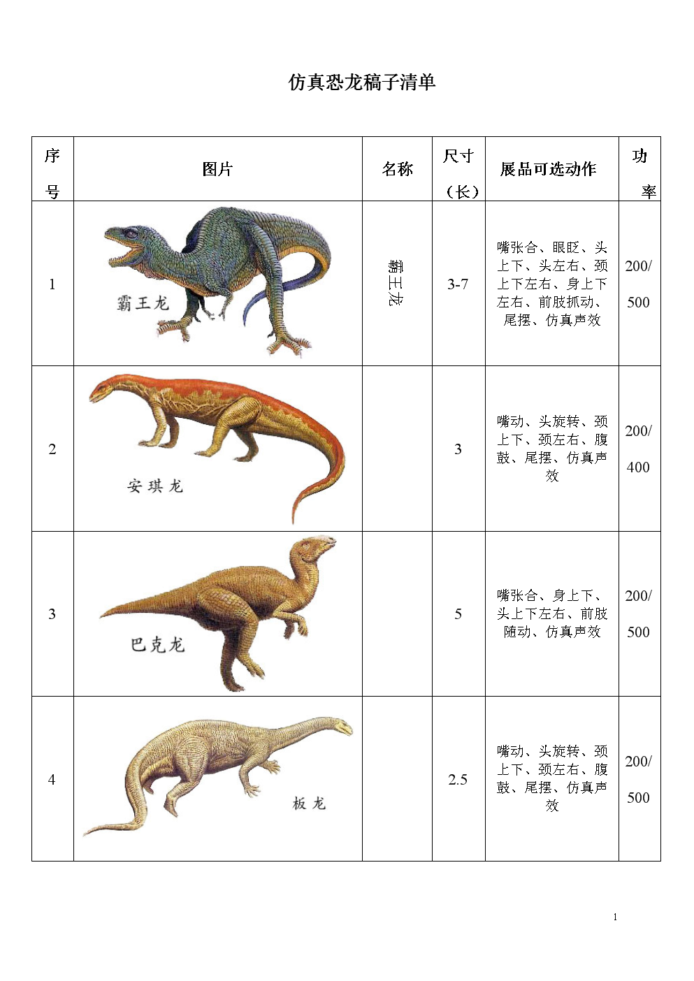 恐龙产品清单表.doc