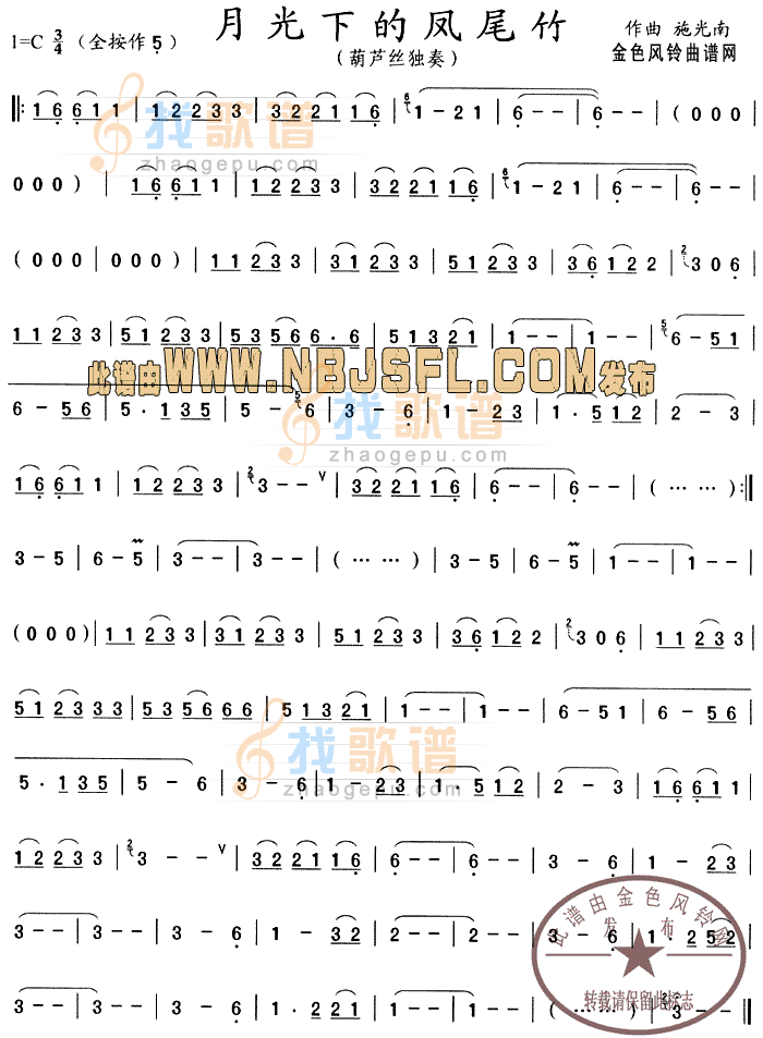 月光下的凤尾竹c调筒音作5专业葫芦丝谱赶快收藏起来