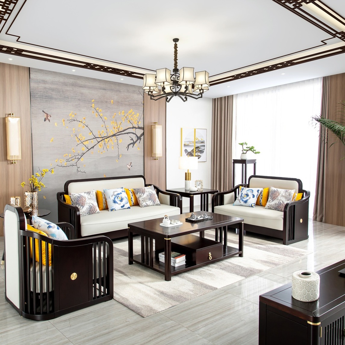 实木沙发客厅别墅乌金木轻奢家用现代123大小户型组合家具新中式