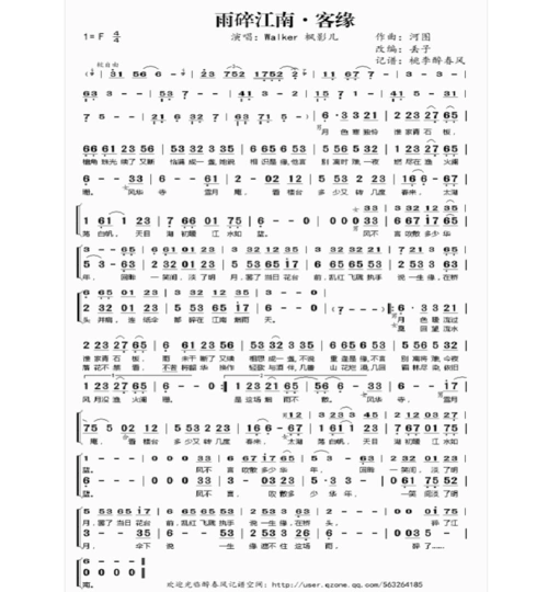 雨碎江南客缘单人版智能简谱枫影儿演唱