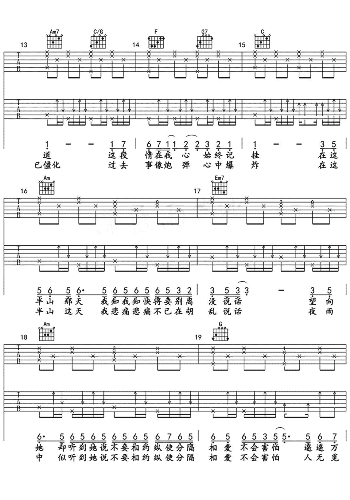 遥远的她吉他谱c调
