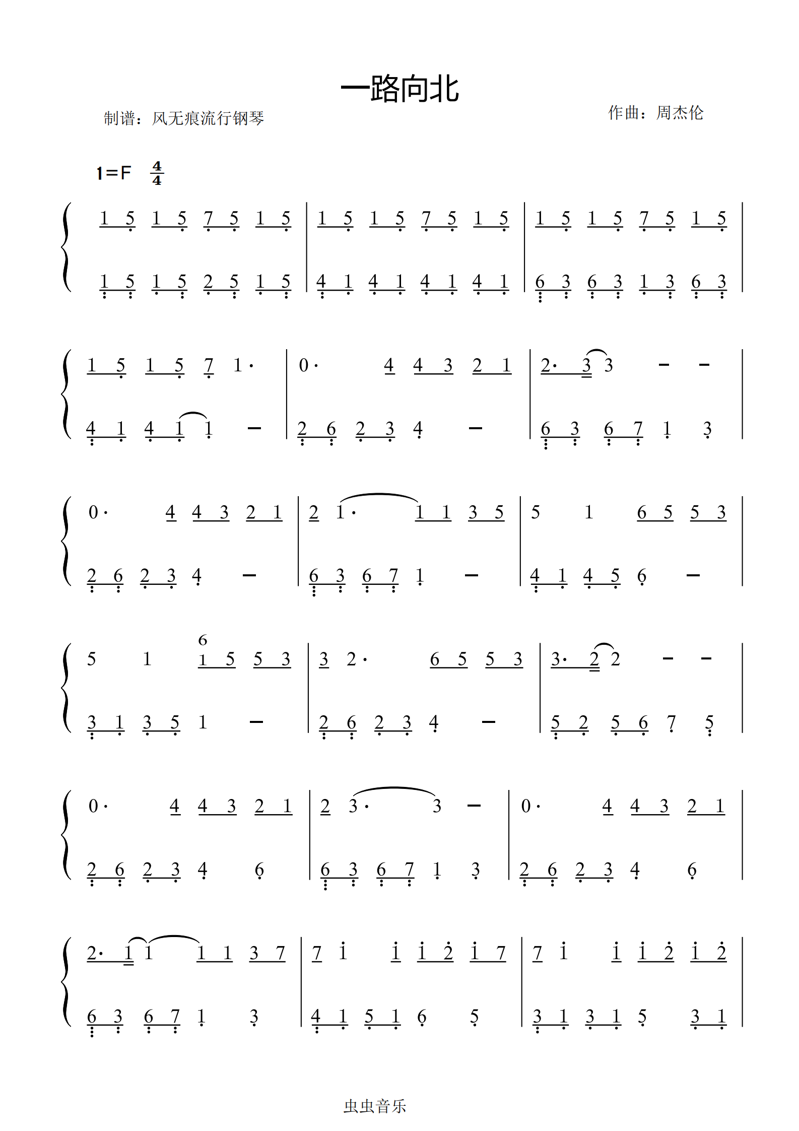 一路向北-周杰伦〖数字简谱〗钢琴谱-风无痕流行钢琴-虫虫钢琴