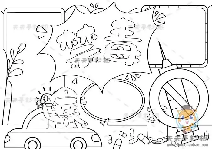 禁毒手抄报. 这是个模板,下期写内容.画的丑莫嫌弃.