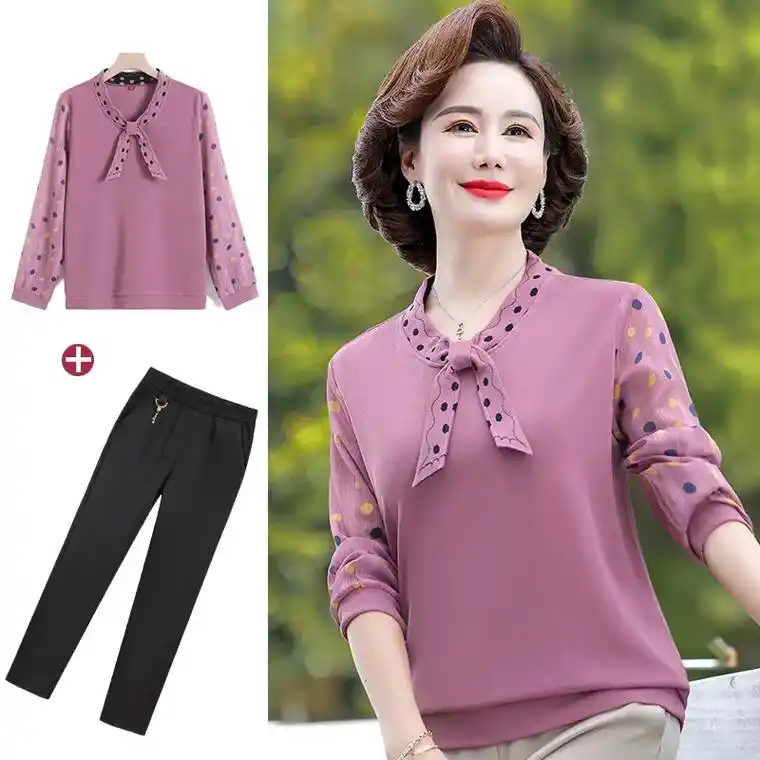 皮尔卡丹妈妈夏装中国风雪纺套装50岁60休闲时尚中老年女士短袖上衣两