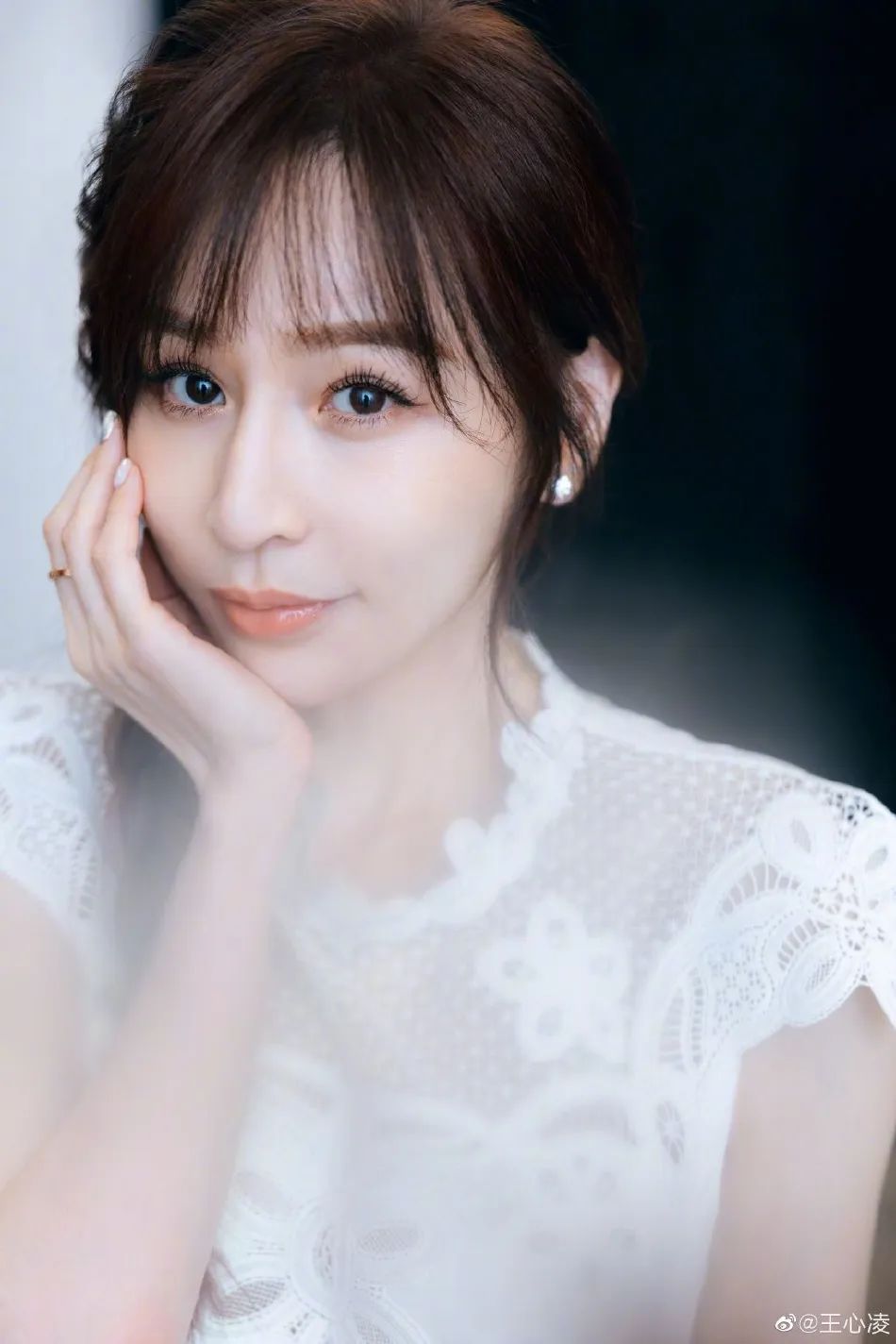 原创王心凌穿白色连衣裙梳单侧麻花辫雪肤玉貌美若天仙