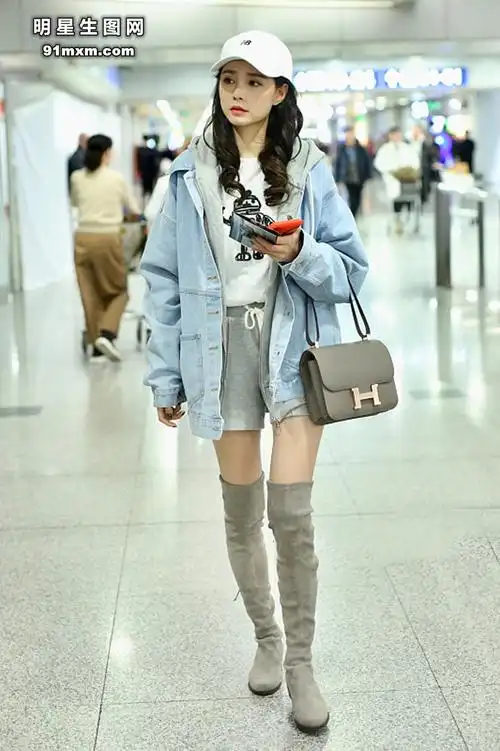魅力不减!沈梦辰牛仔裤现身机场秀2米长腿