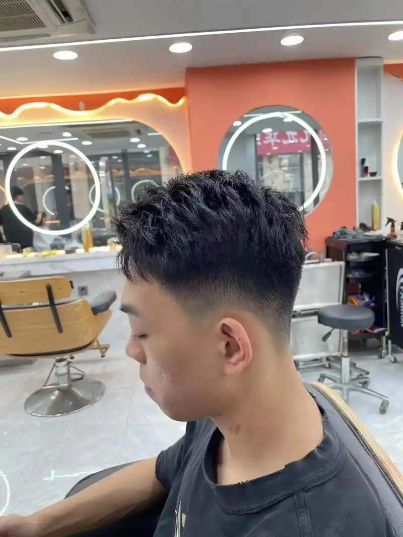 头发不算太多的男生,就要打出发根的蓬松造型,这样看上去整个发型既有
