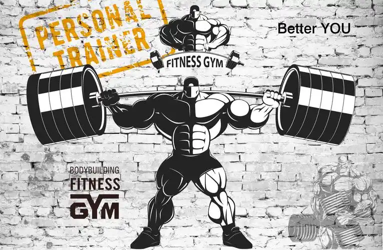 健身房工作室墙面装饰品场景布置背景墙贴壁纸画3d立体运动馆创意