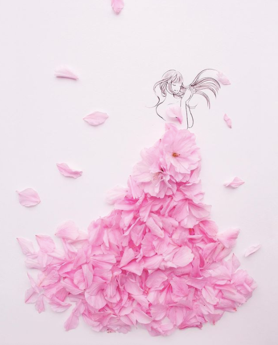 生活创意##设计生##手绘#花瓣是最美的裙摆
