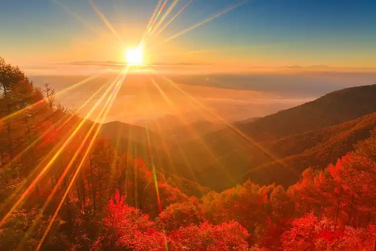 日本长野县,yatsugatake山和云覆盖的村庄的日出图片下载