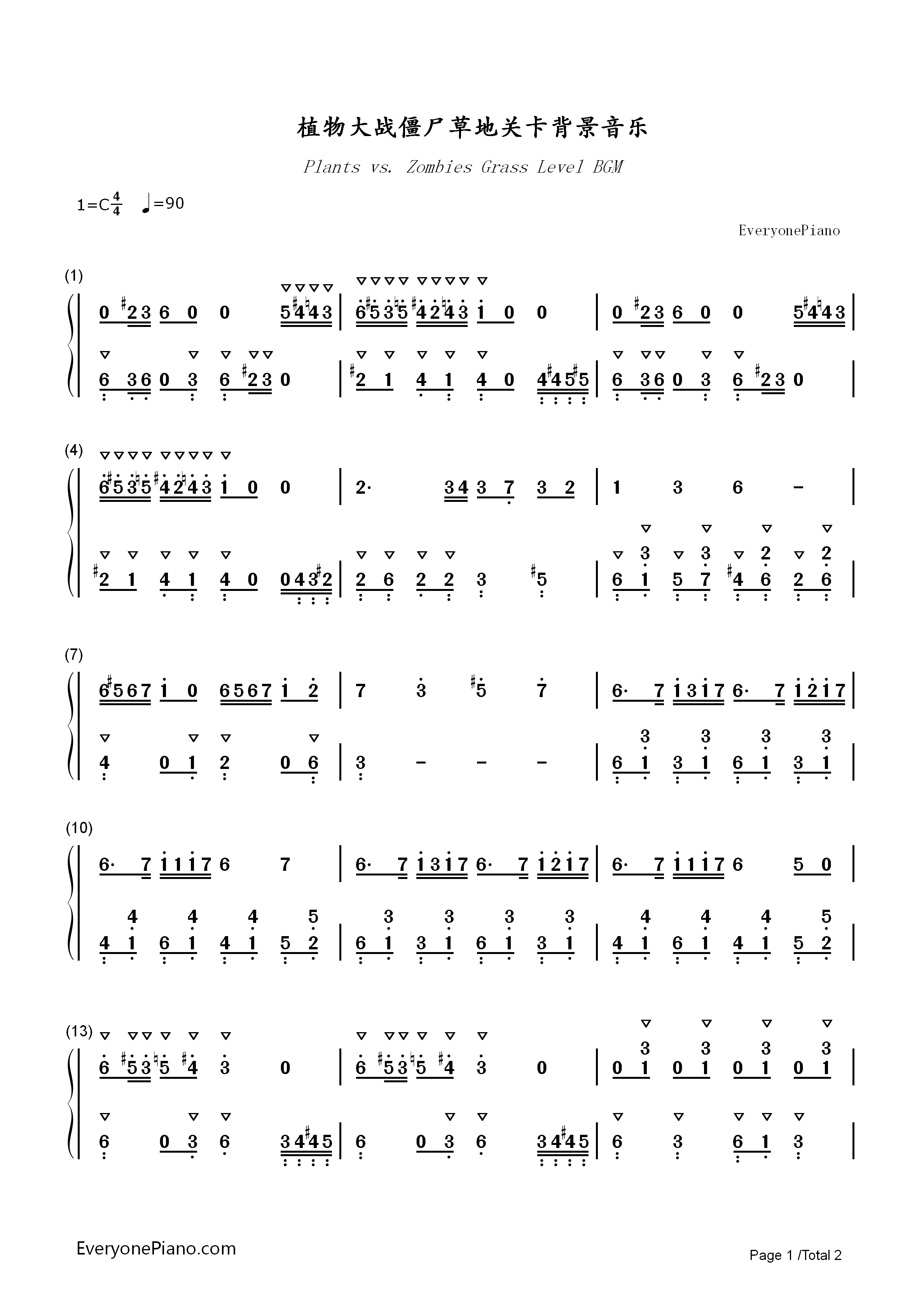 吉他谱 - 茉莉花(c调尤克里里指弹谱)入门版