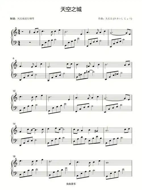 天空之城钢琴谱_久石让宫崎骏_超简单版