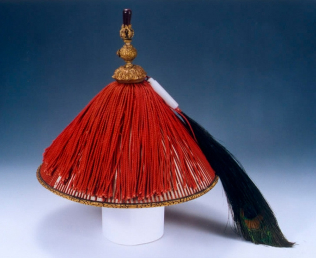 【衍圣公夏朝冠】—清——山东曲阜衍圣公夏朝冠,顶上部饰红宝石,中饰