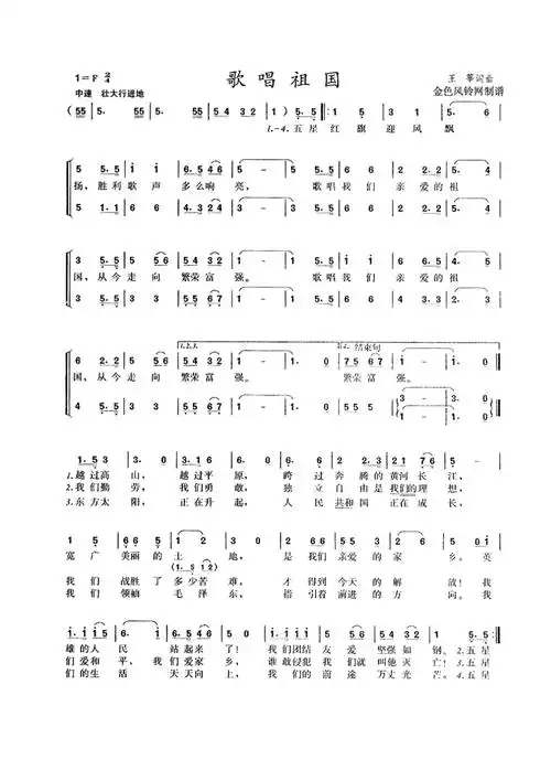 歌唱祖国_歌唱祖国简谱_歌唱祖国吉他谱_钢琴谱-查图片