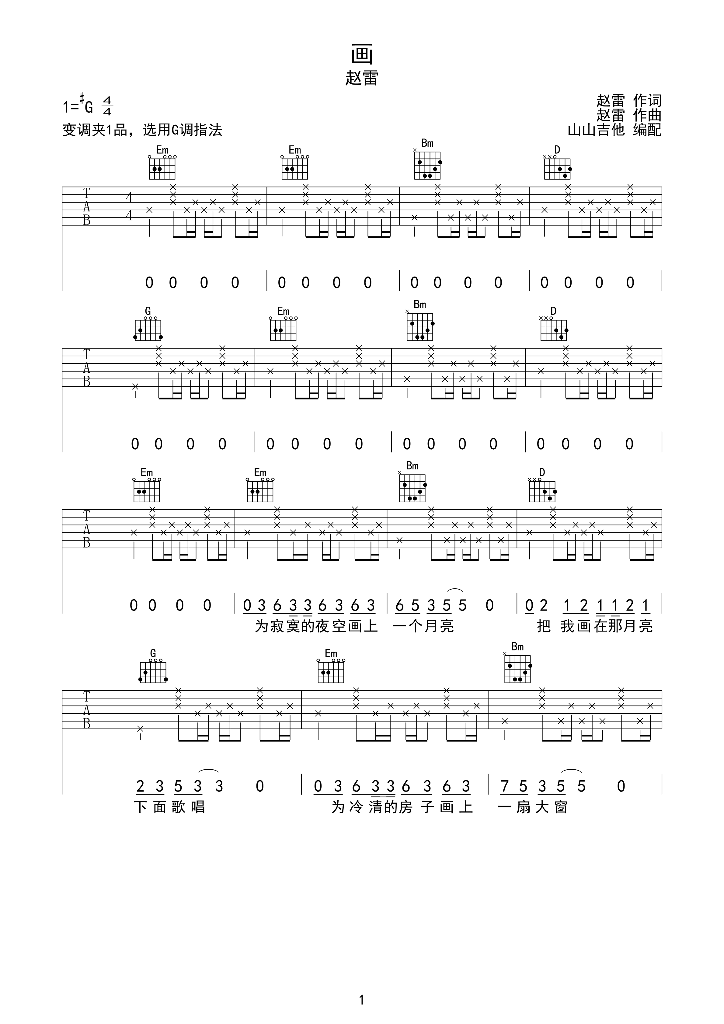 画-赵雷 g调简单版编配