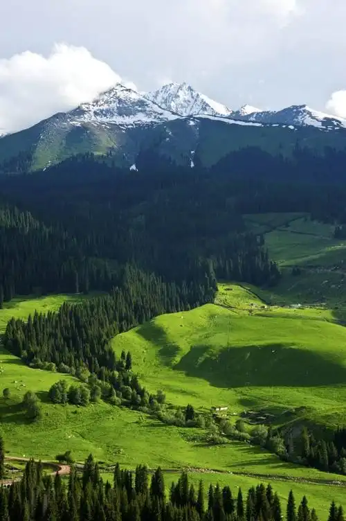 这里的草原优美,细腻,秀气,雪山与草原交相辉映,景色美伦美奂.