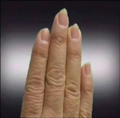 双手8~10个手指要有半月痕.