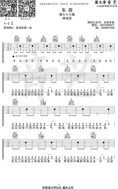东西吉他谱_林俊呈_g调_高清弹唱谱