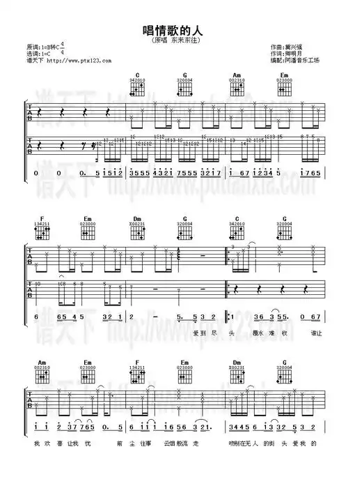 唱情歌的人吉他谱东来东往高清六线谱图片谱