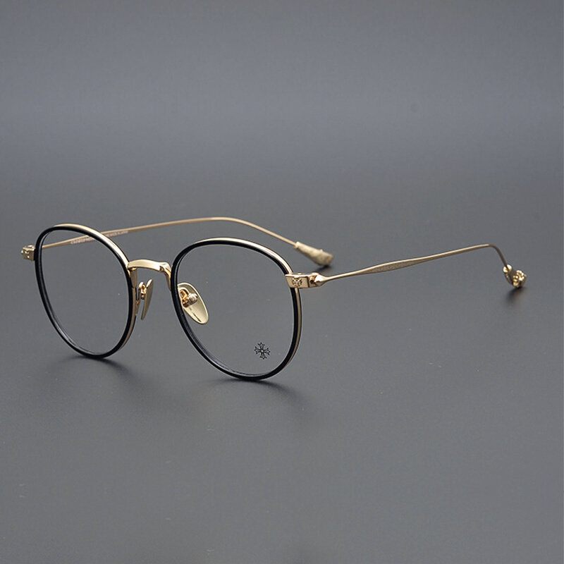 海之卿潮流眼镜框男款纯钛金色学生帅气眼镜框架防蓝光金色无度数平光