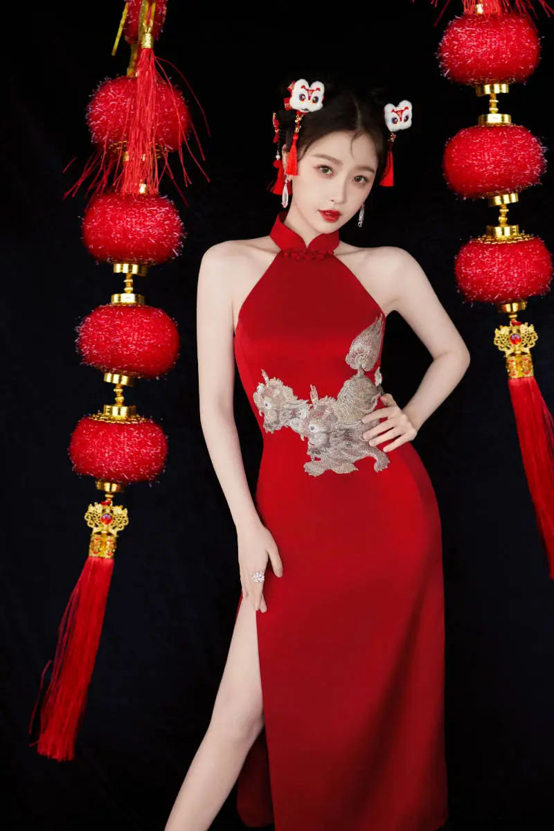虞书欣真敢穿,穿大露肩高开叉旗袍秀凹凸身材,双手举高可爱性感_传统