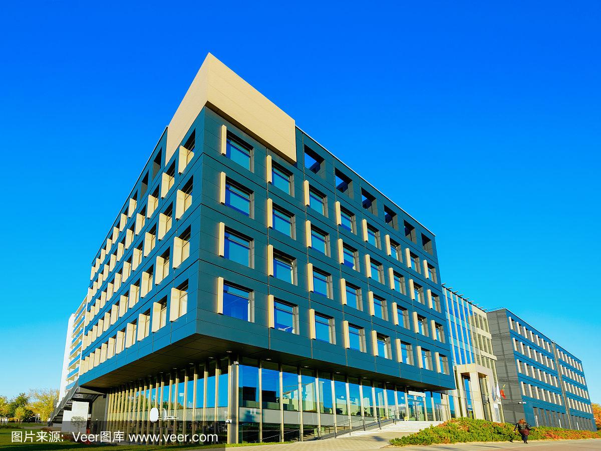 仰视商务楼办公楼大楼蓝色大楼建筑办公室
