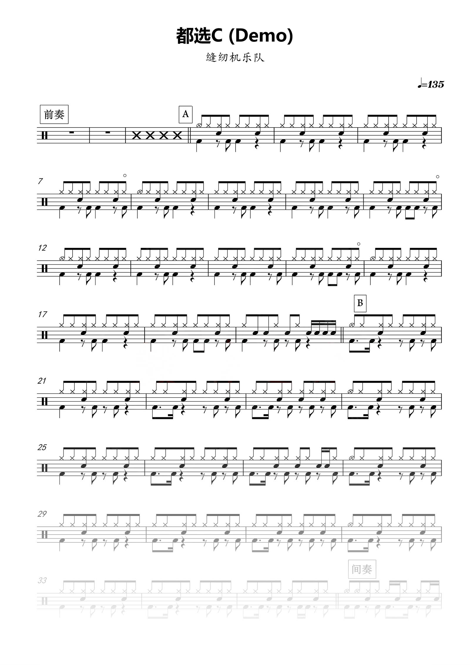 缝纫机乐队《都选c》高清完整版鼓谱