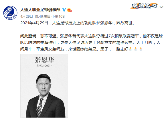 前国足队长张恩华去世昨日才度过48岁生日