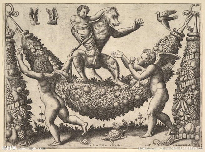 巨幅面铜版画《亚金和亚米拿达》意大利文艺复兴雕塑家米开朗琪罗