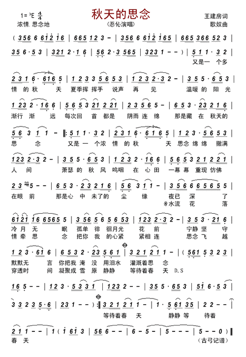 秋天的思念_简谱_搜谱网