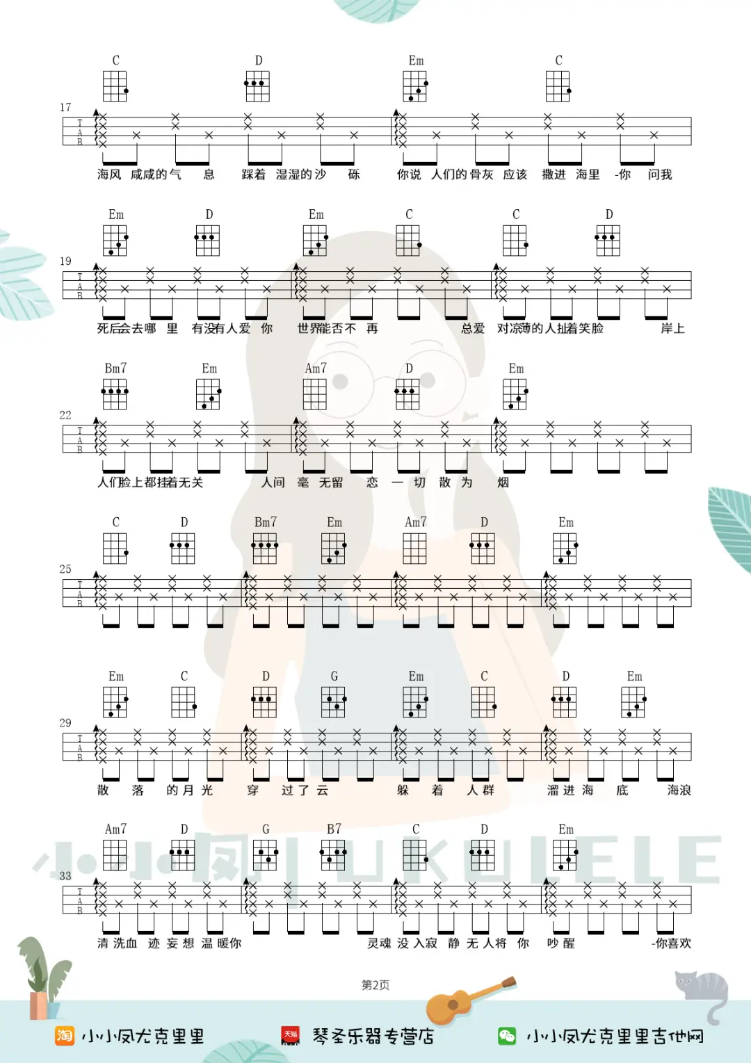 尤克里里弹唱曲谱教学《海底》_尤克里里_知识_艺术