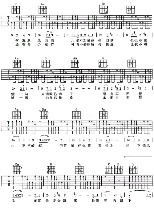 岁月无声 吉他谱_吉他曲谱-明明简谱网