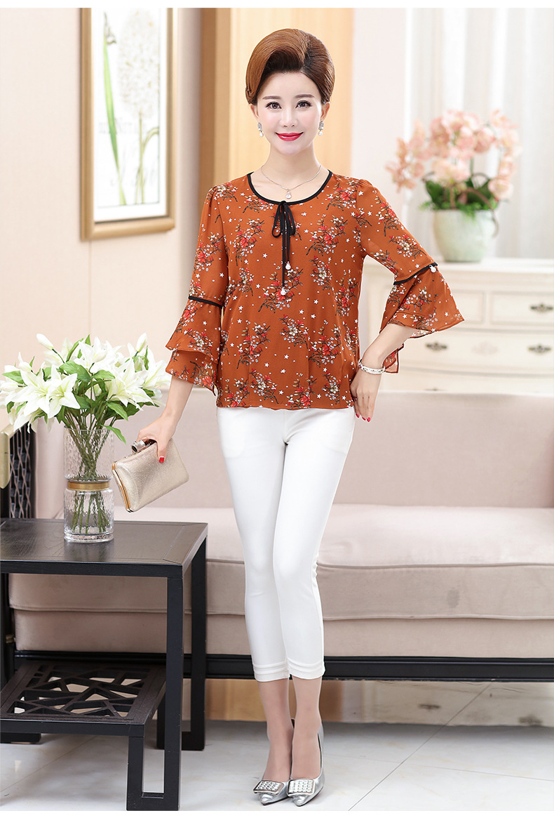 中老年女装t恤中长款宽松中年妇女雪纺上衣妈妈夏装短袖衬衫批发