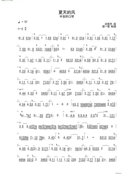夏天的风(半音阶口琴) 歌谱简谱网