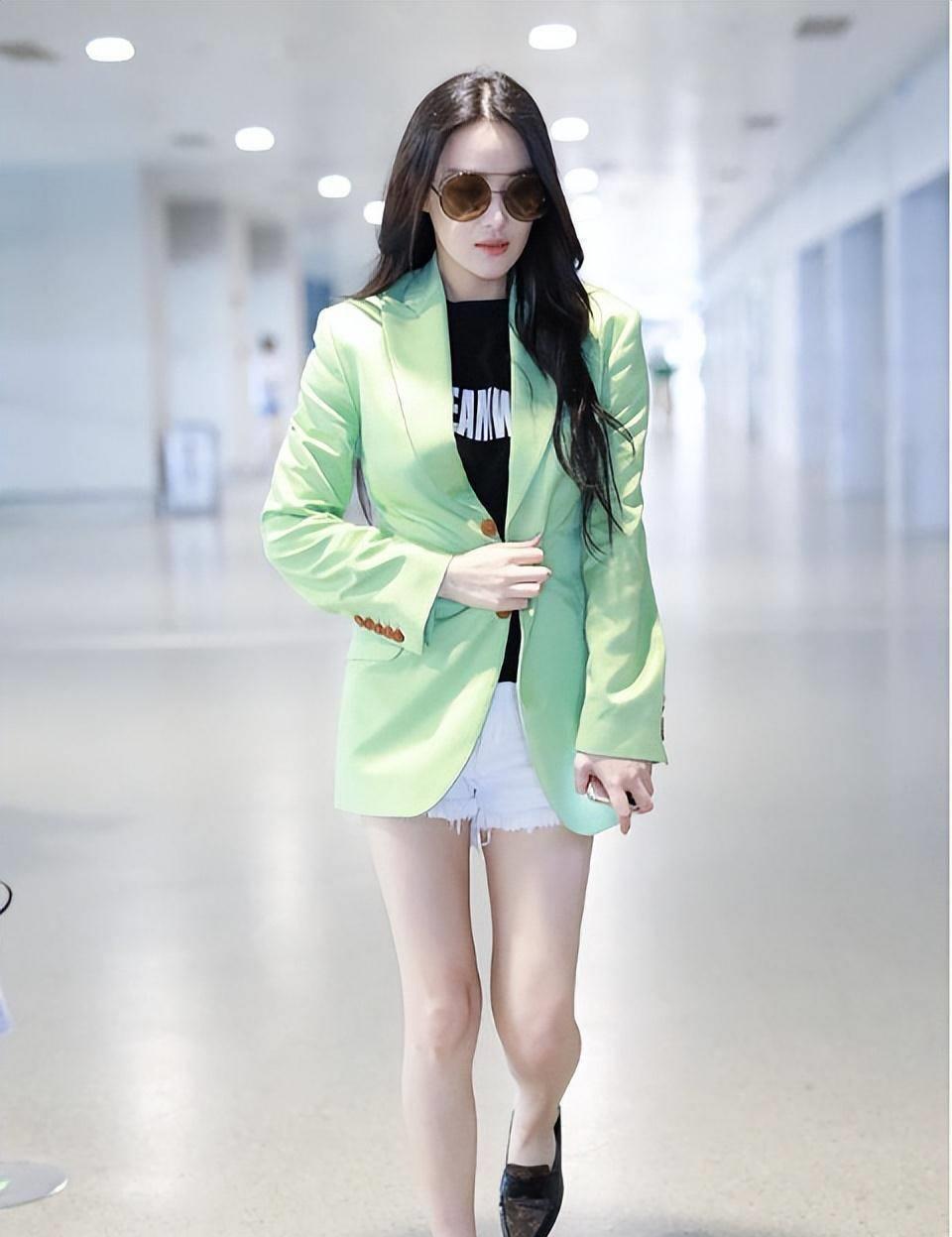 张馨予严肃的时候依然魅力十足,超短牛仔裤搭配紧身裤魅力十足!