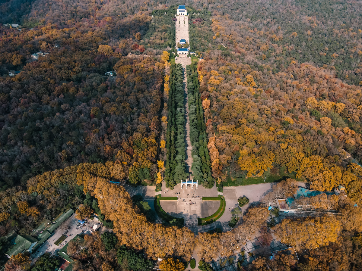 立冬时节航拍南京中山陵 气势恢宏景色如画