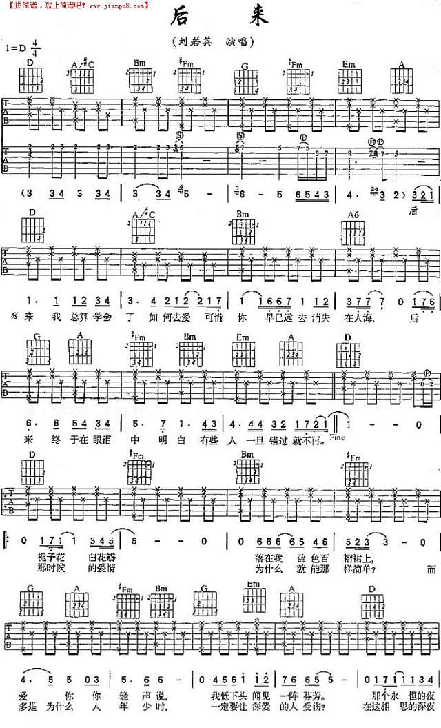 后来吉他谱 刘若英-后来(完整版)前奏 间奏 尾奏