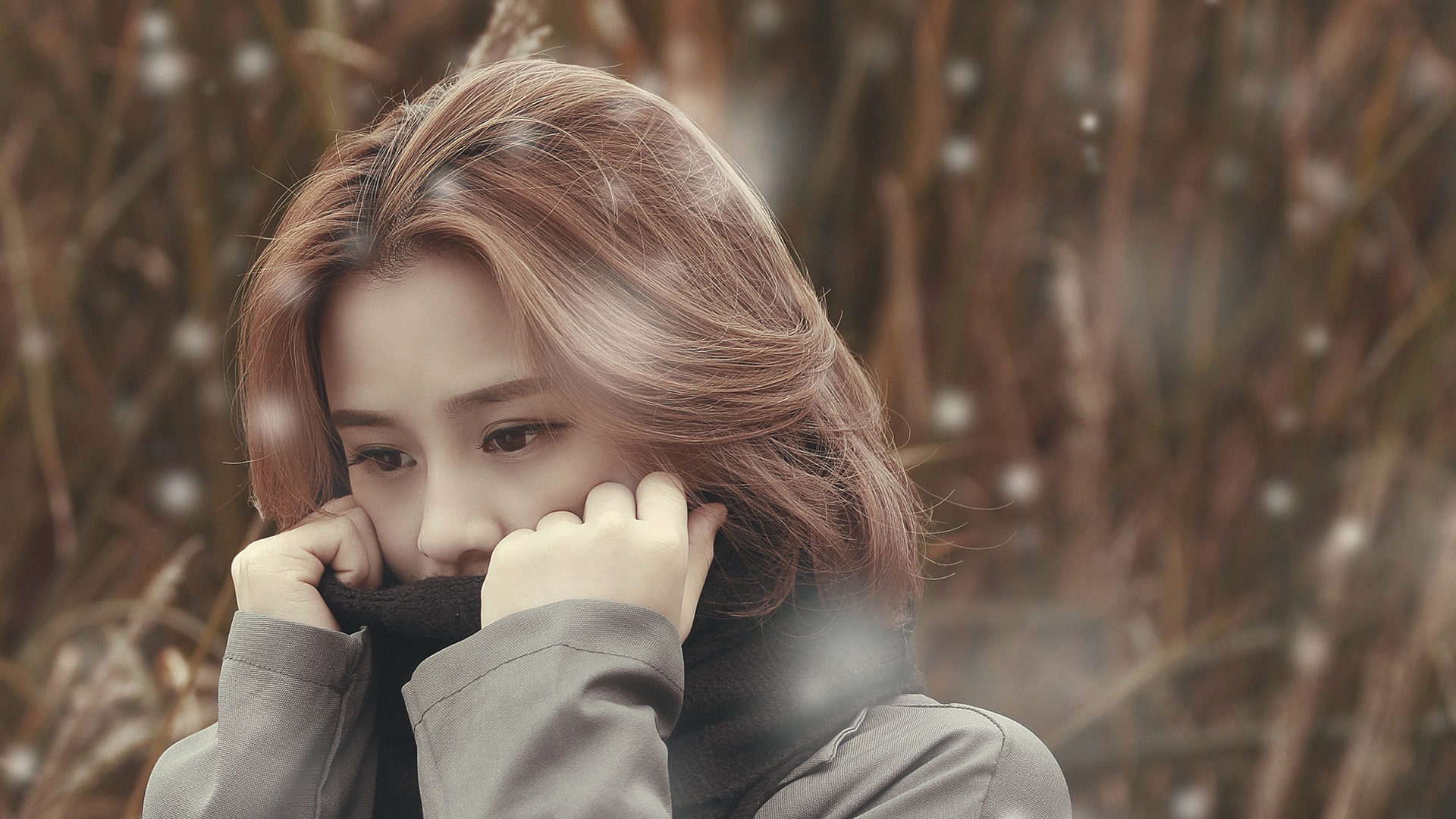 秋日里文艺又有气质的美女写真桌面壁纸