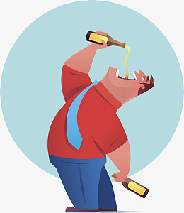 卡通人物插图喝醉酒的男人