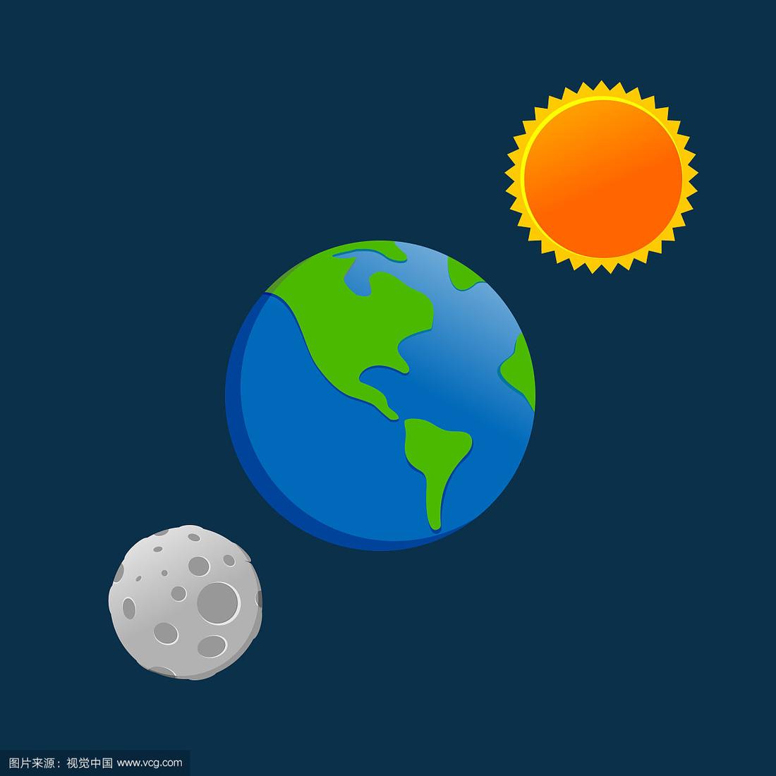 地球,太阳,月亮卡通图画设计