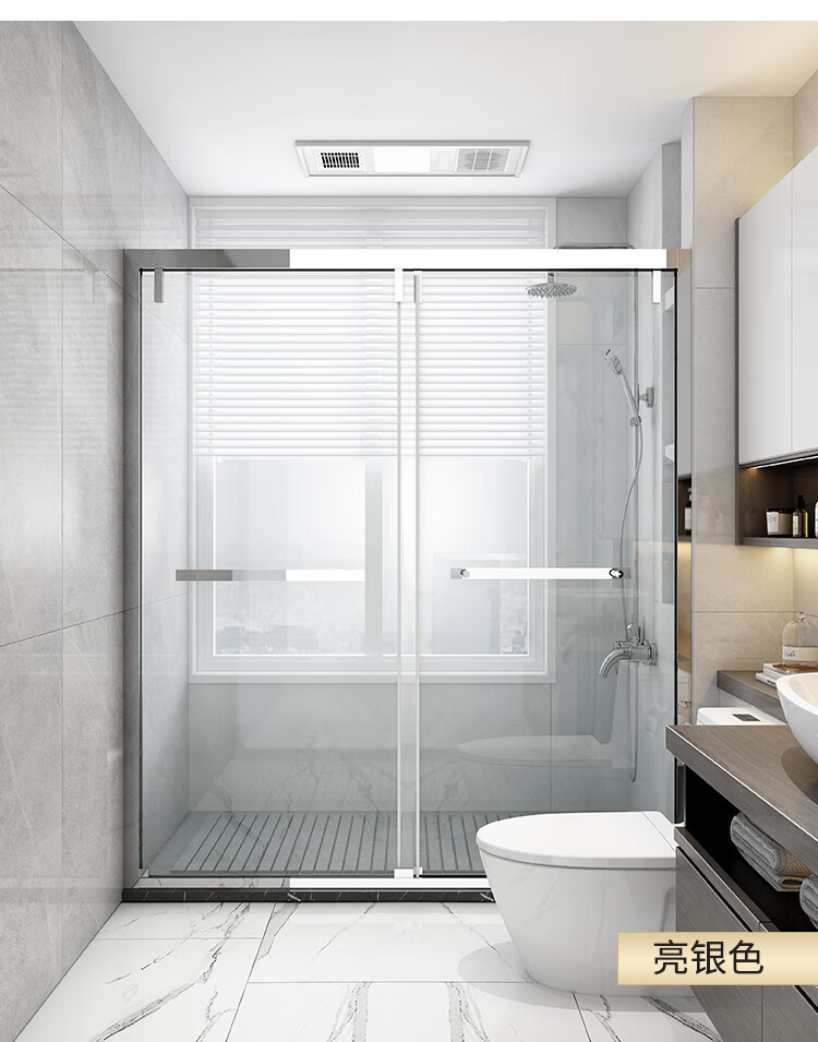 雾隐门淋浴房浴室干湿分离沐浴房玻璃隔断一字型洗澡房间整体浴屏家用